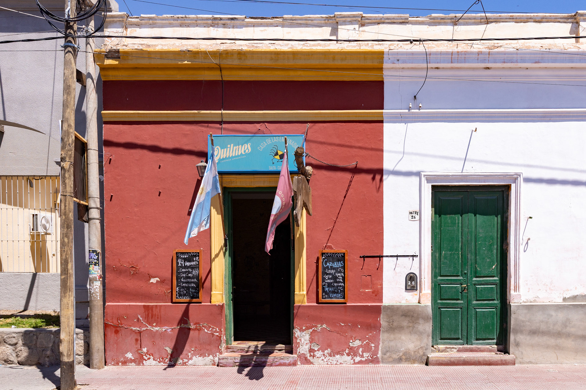 Um fünf Uhr haben wir wieder einmal eine Weindegustation mit Führung durch die Bodega El Esteco, welche gleich neben dem Hotel liegt. Dieser Betrieb ist Einiges grösser und auch industrieller als die Bodega Colomé. Hier werden bis zu 5 Mio Flaschen pro Jahr produziert. Gegen 18 Uhr ist die Führung zu Ende und wir können uns auf den «Ausgang» vorbereiten. Wir haben vor, für das Nachtessen die Casa de Empanadas zu besuchen. Eine uralte Kneipe, welche, wie es der Name sagt, auf Empanadas spezialisiert ist.
