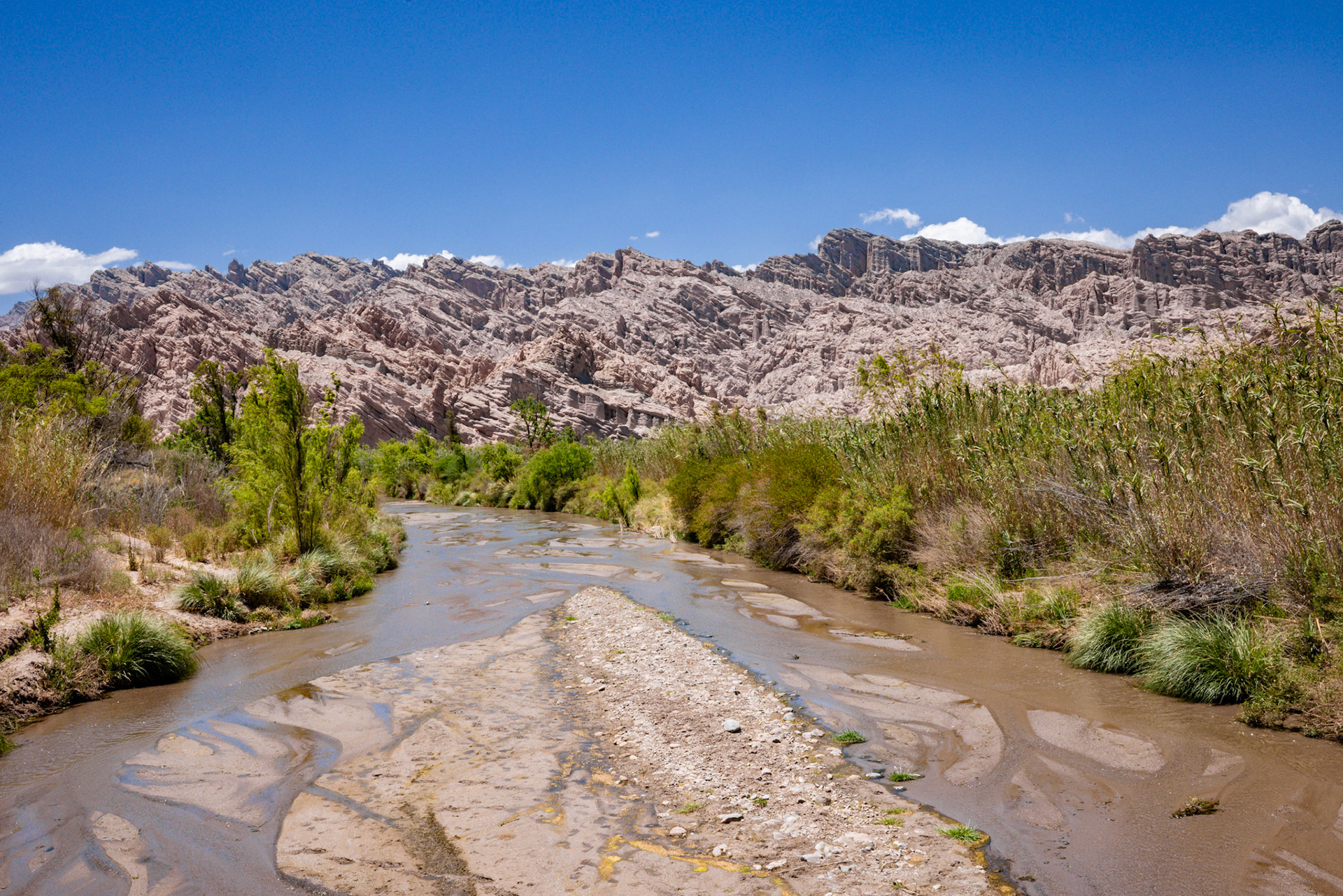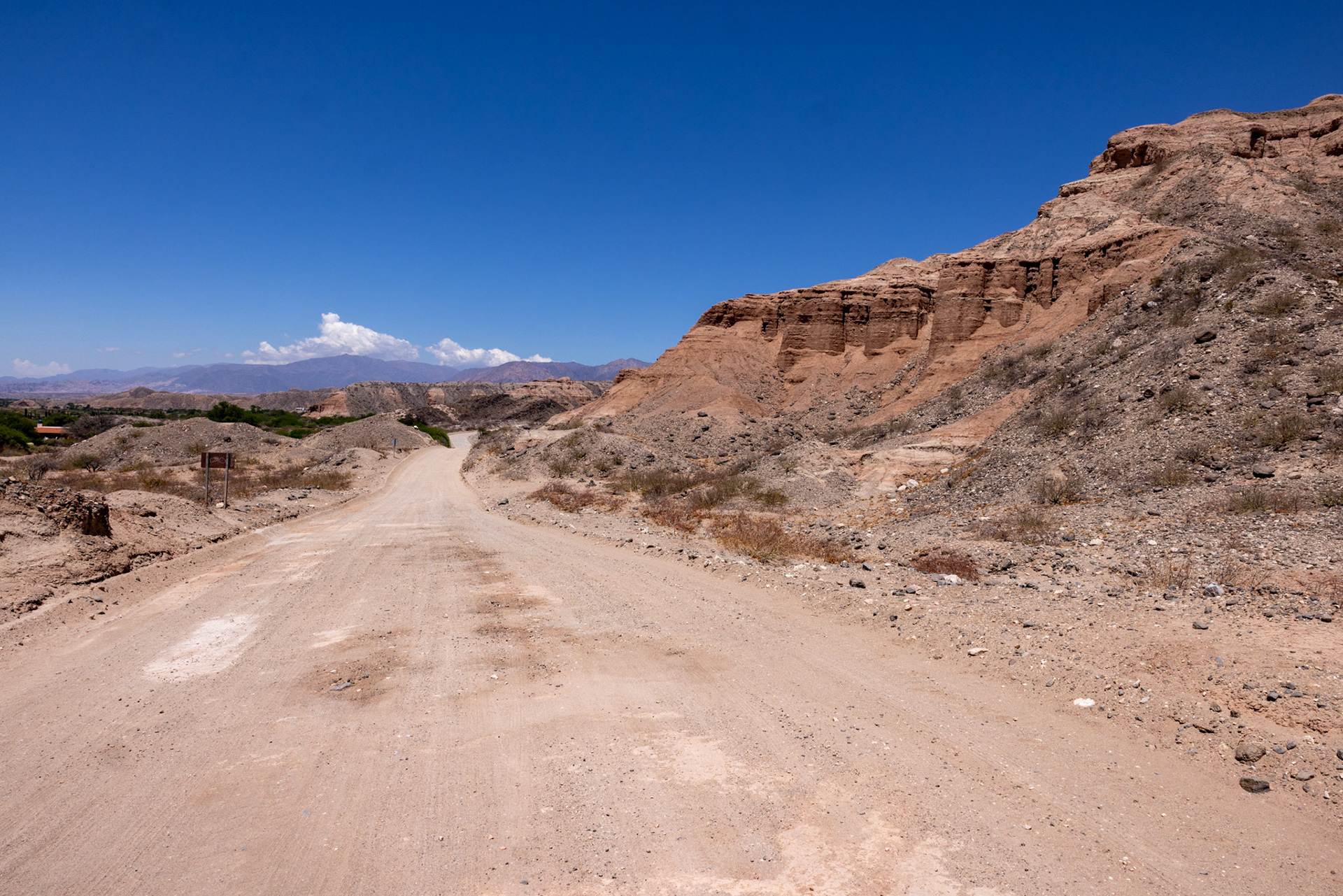 Auf der Weiterfahrt nach Salta entschliessen wir uns, einen Umweg über die „Embalse de Cabra Corral“ zu machen, ein riesiger, landschaftlich wunderschöner Stausee von über 100 km2. Der Umweg erweist sich einmal mehr als ziemlich abenteuerlich. Wiederum fahren wir fast 60 km ohne Asphalt über holprige Strassen, durch Flussläufe und Sandpisten bis wir nach über zwei Stunden endlich wieder Asphalt unter den Rädern haben.