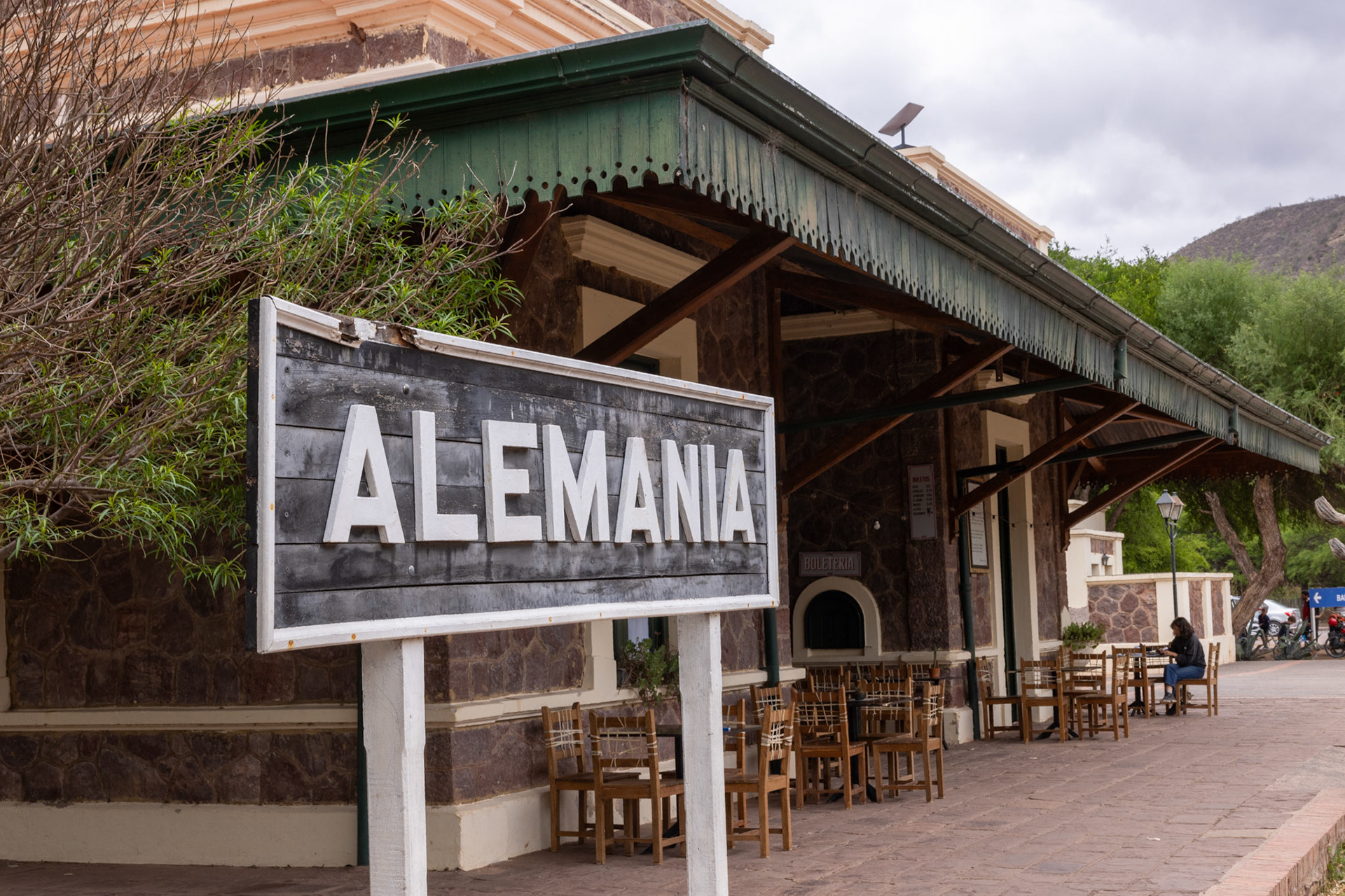 Ein paar Kilometer weiter biegen wir ab zum verlassenen Örtchen Alemanía. Hier war einst die Endstation der Eisenbahnline, welche ursprünglich bis nach Cafayate hätte führen sollen. Der Aufwand, um durch die Qebrada ein Bahntrassee zu bauen, wäre aber zu gross gewesen. Nach der Stilllegung der Eisenbahn im Jahr 1971 sind die Menschen weggezogen. Einzig im ehemaligen Bahnhofsgebäude wird heute ein kleines Restaurant geführt.