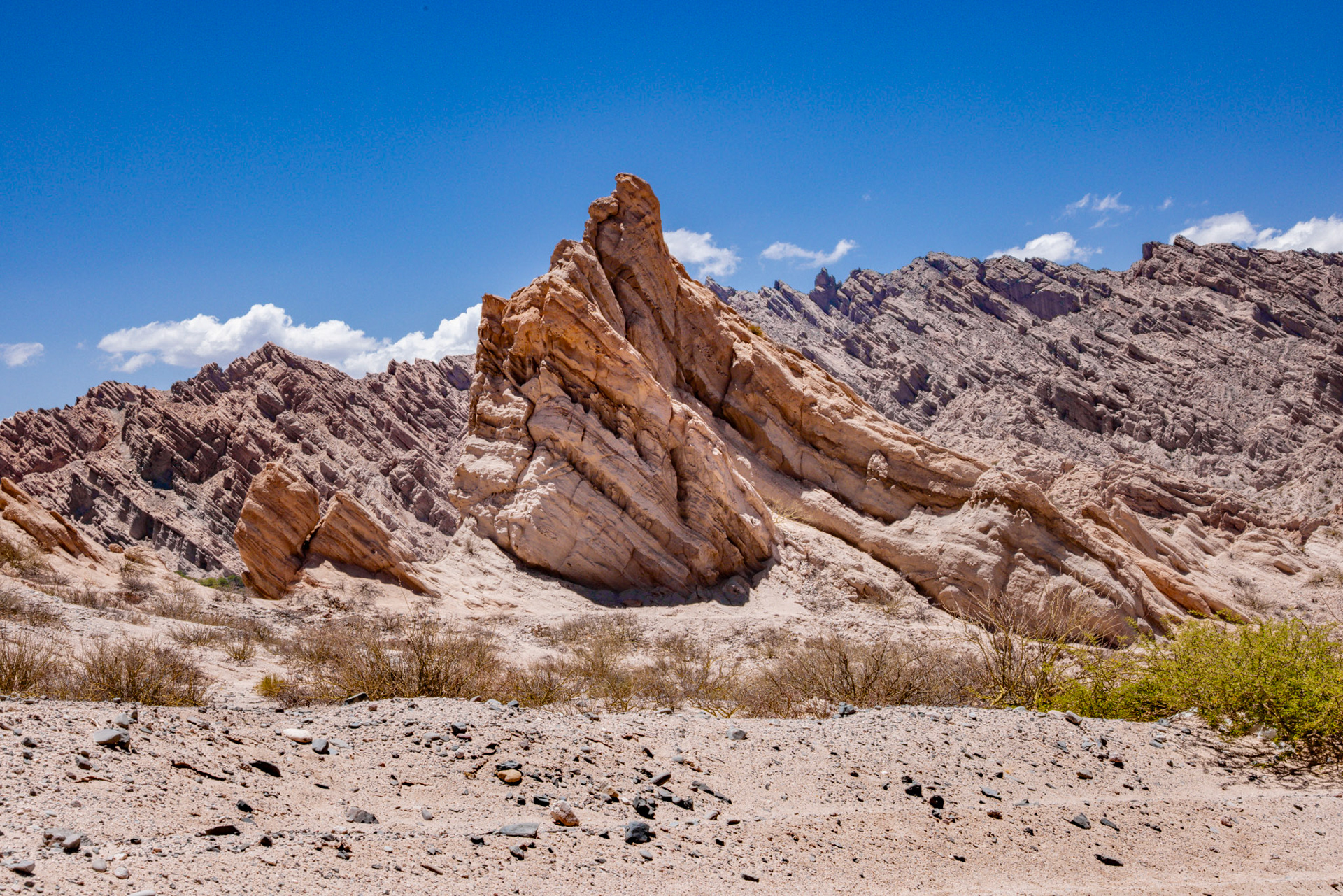 Und so können wir endlich die Fahrt nach Cafayate unter die Füsse oder besser unter die Räder nehmen. Die 113 km auf der Routa Nacional 40 sind auch hier bis auf die letzten zwei Kilometer nicht asphaltiert. Allerdings lohnt es sich hier, langsam zu fahren. Die Fahrt ist sehr abwechslungsreich und die Farben und Formen der bizarren Felsen wechseln alle paar Kilometer. Die Landschaft ist fast surreal und könnte problemlos als Kulisse für einen Science-Fiction-Film dienen.