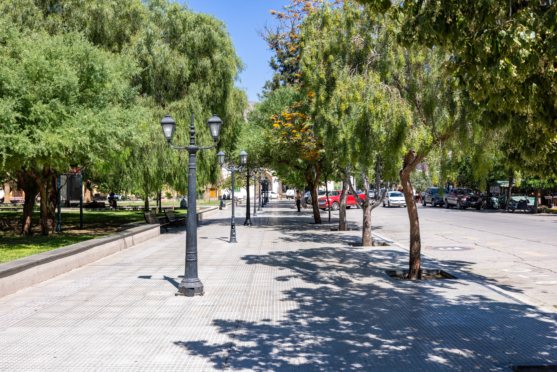Bereits morgens um 9 Uhr ist es ziemlich heiss in Cafayate, so dass wir mit dem Auto ins Dorfzentrum fahren. Cafayate mit seinen 12‘000 Einwohnern ist die Hauptstadt des gleichnamigen Departamentes und dank der vielen Weinkellereien und der attraktiven Umgebung auch ein touristisches Zentrum.