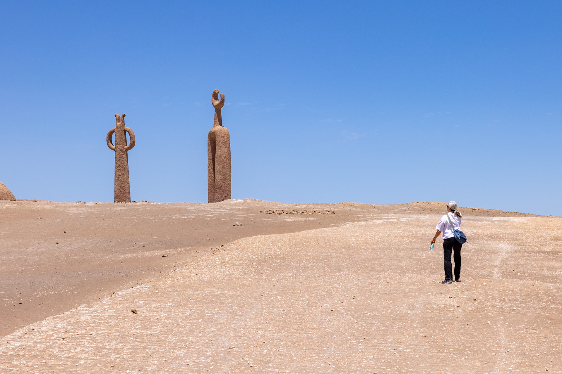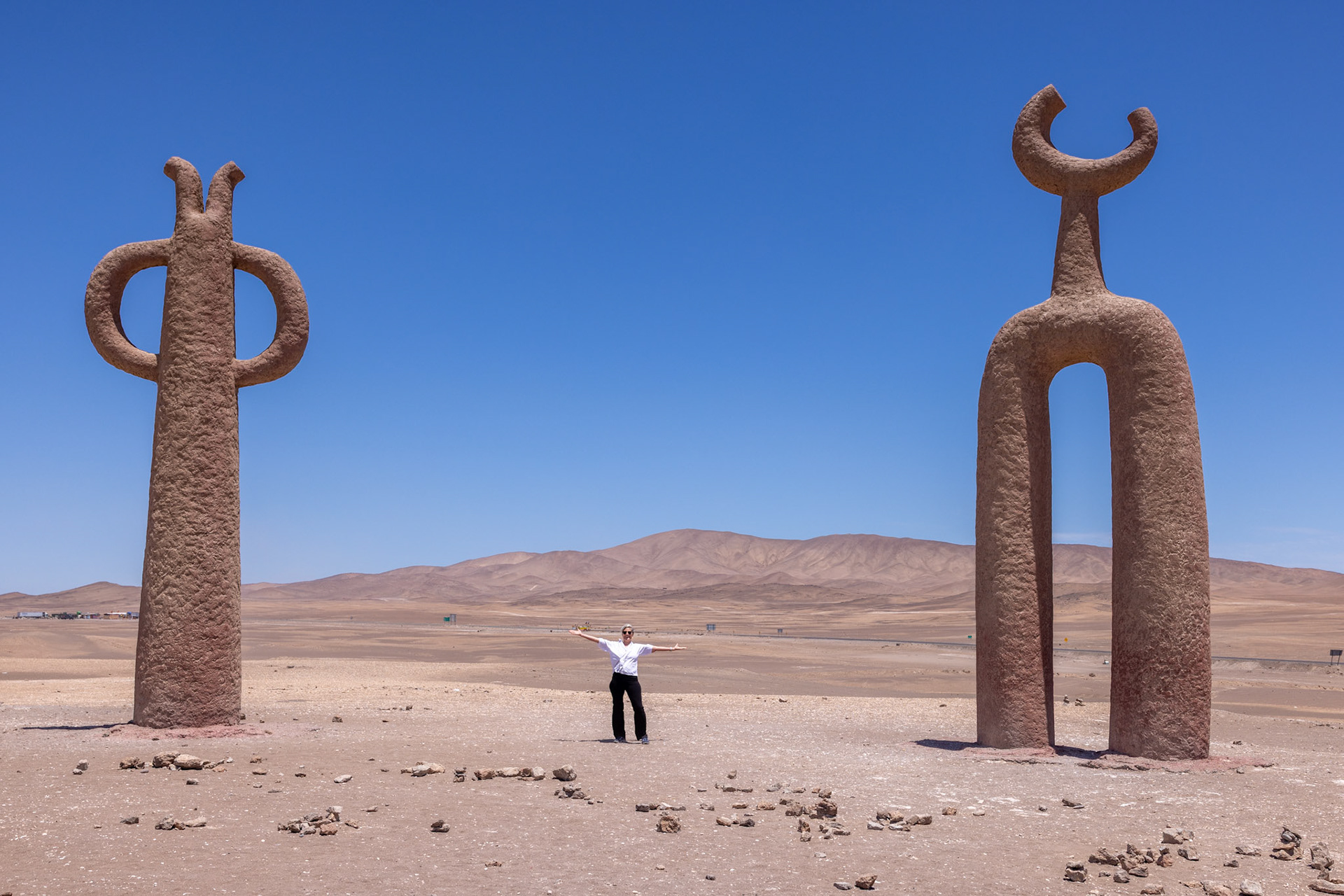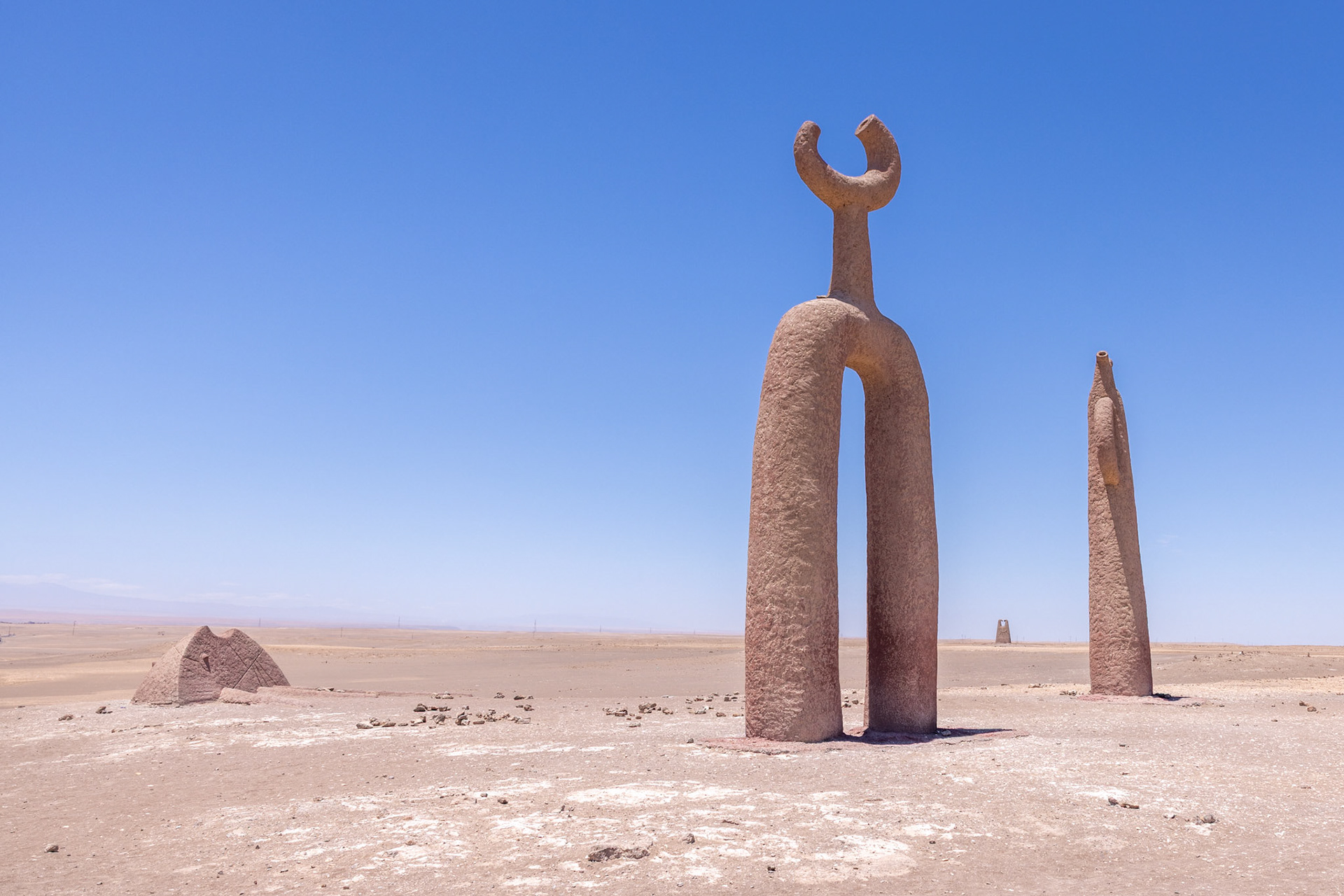 Einen weiteren Halt machen wir bei den "Presencias Tutelares", eine Skulpturengruppe aus Beton vom chilenischen Künstler Juan Diaz Fleming. Die bis zu 9m hohen Figuren erinnern an die Geoglyphen (Erdzeichnungen) welche in der Wüste von den Ureinwohnern geschaffen wurden.