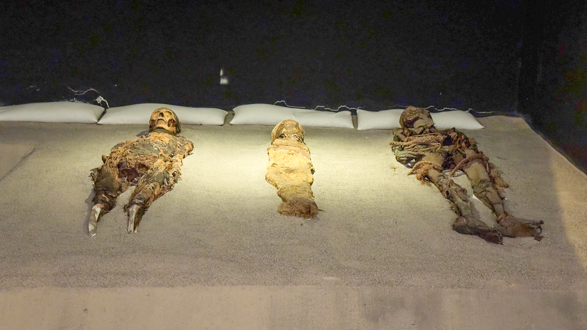 Als erstes besuchen wir das archäologische Museum von San Miguel de Azapa, wo wir eine beeindruckende Ausstellung besuchen über die Chinchorro Kultur, eine prähispanische Gesellschaft, welche zwischen 7000 und 1500 vor Christus die Küste der Atacama Wüste bewohnte. Erstaunlich ist vor allem, wie die Chinchorros mit den Toten umgegangen sind. Den Verstorbenen wurde zuerst die Haut und die Eingeweide entfernt. Der leere Körper wurde danach mit Lehm und Erde gefüllt. Die Toten erhielten zudem eine Gesichtsmaske und wurden zum Teil als Skulpturen aufgestellt.