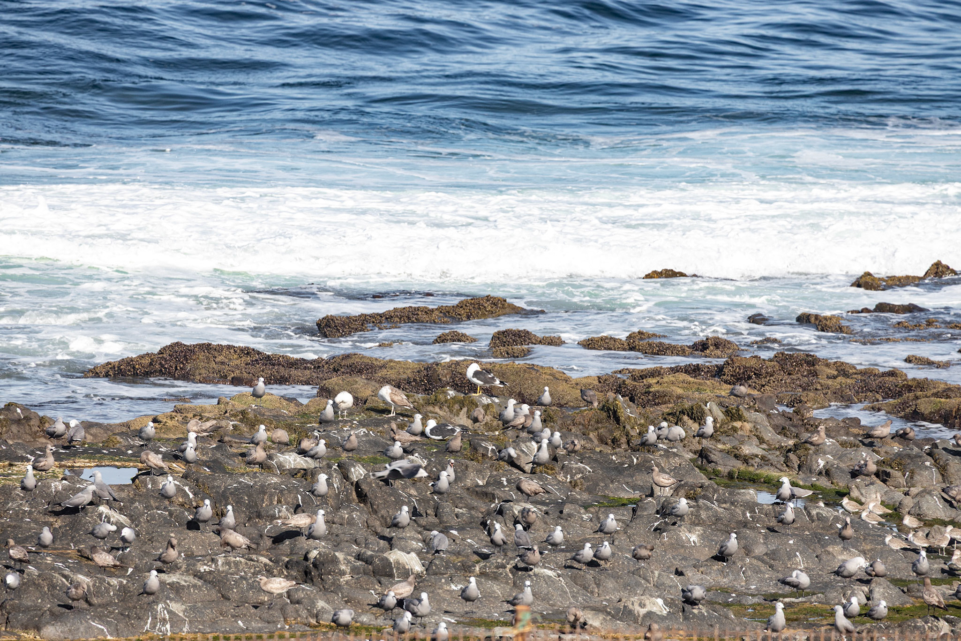 Geweckt werden wir heute von den Möwen, welche zu tausenden auf den Felsen vor unserem Hotel sitzen.