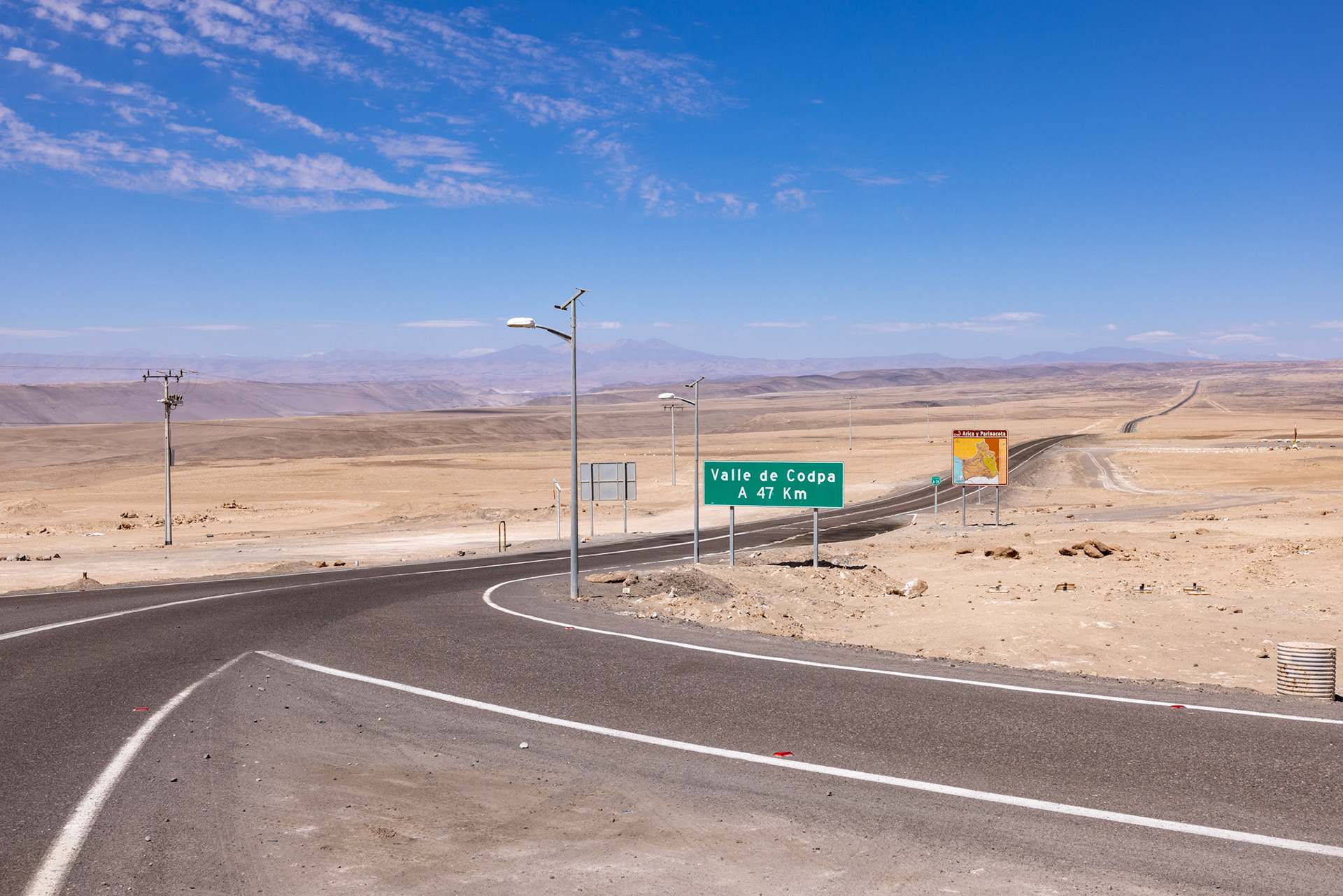 Gegen 10 Uhr fahren wir los. Wir wollen unsere nächste Station erreichen, das kleine Örtchen Codpa, mitten in der Atacama Wüste. Auf dem Weg dorthin machen wir einige Zwischenhalte und Abstecher.