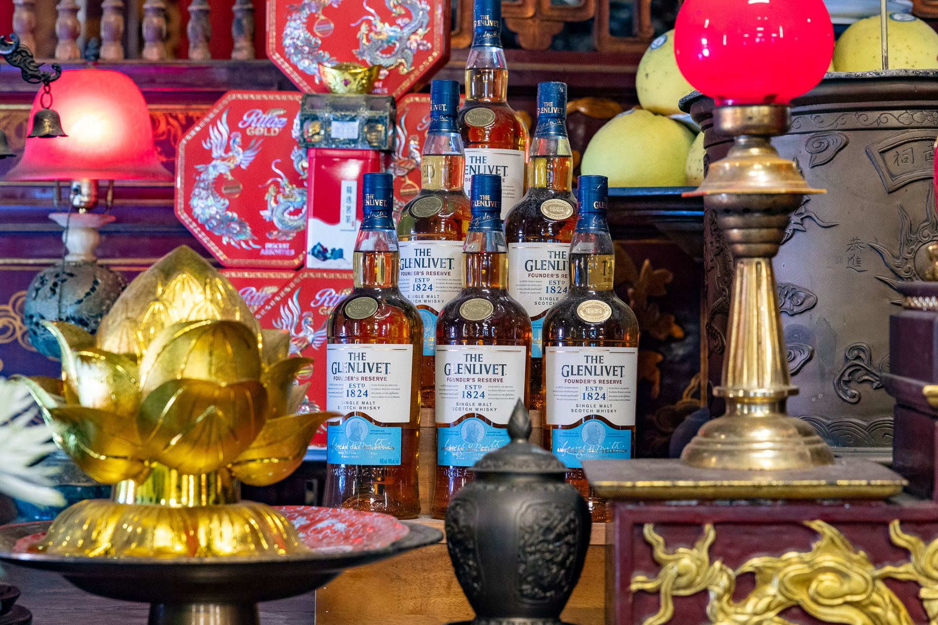 Heute ist unser letzter Tag in dieser faszinierenden Stadt. Wir sind ziemlich“religiös“ unterwegs. Als erstes besuchen wir den Uán Thanh-Tempel am Ufer des Westsees. Er ist Xuan Wu, einer der wichtigsten Gottheiten des Taoismus gewidmet und einer der vier Tempel, welche gebaut wurden, um die Hauptstadt vor bösen Geistern zu schützen. In der Haupthalle thront die über vier Tonnen schwere Statue des Xuan Wu. Was uns beeindruckt, sind die Opfergaben auf den verschiedenen Altären. Da gibt es diverse Nahrungsmittel, ganze Pyramiden aus Mineralwasserflaschen und dazwischen immer wieder wunderschön drapierte Whiskyflaschen von einfachen Burbons bis zu edlen Singlemalts.