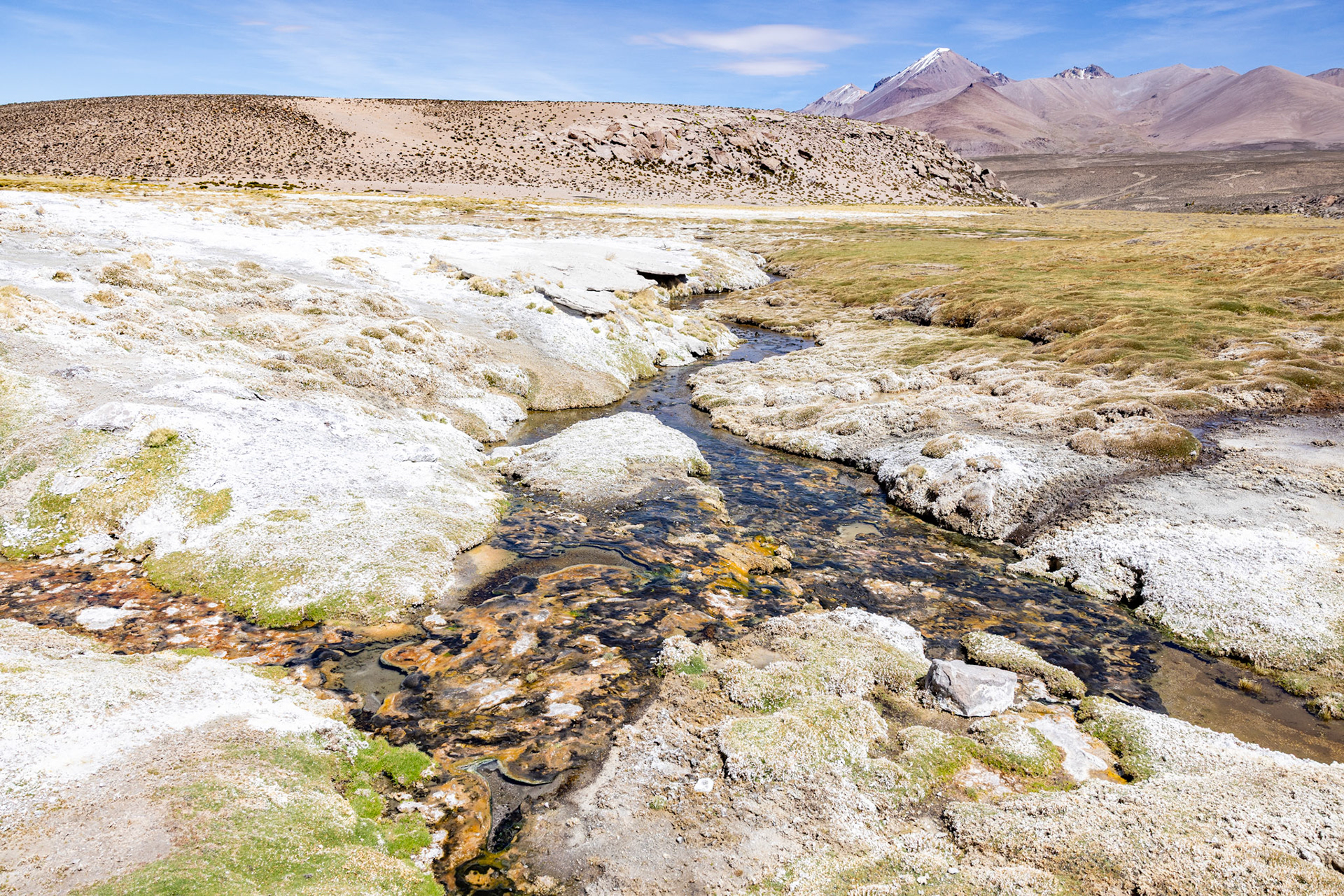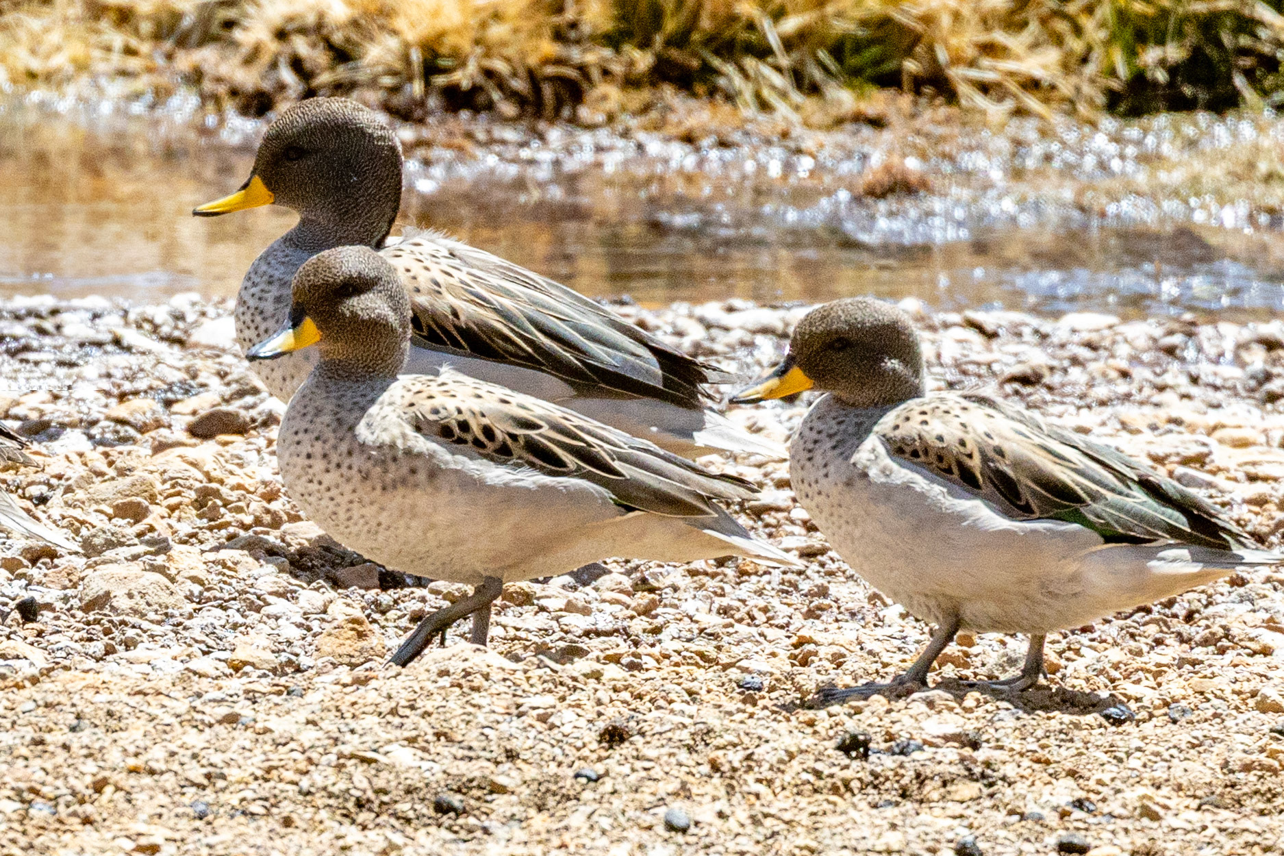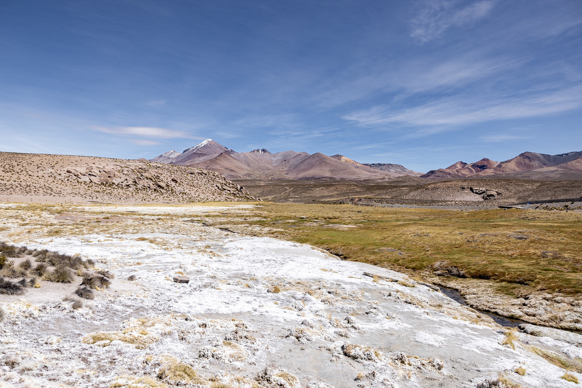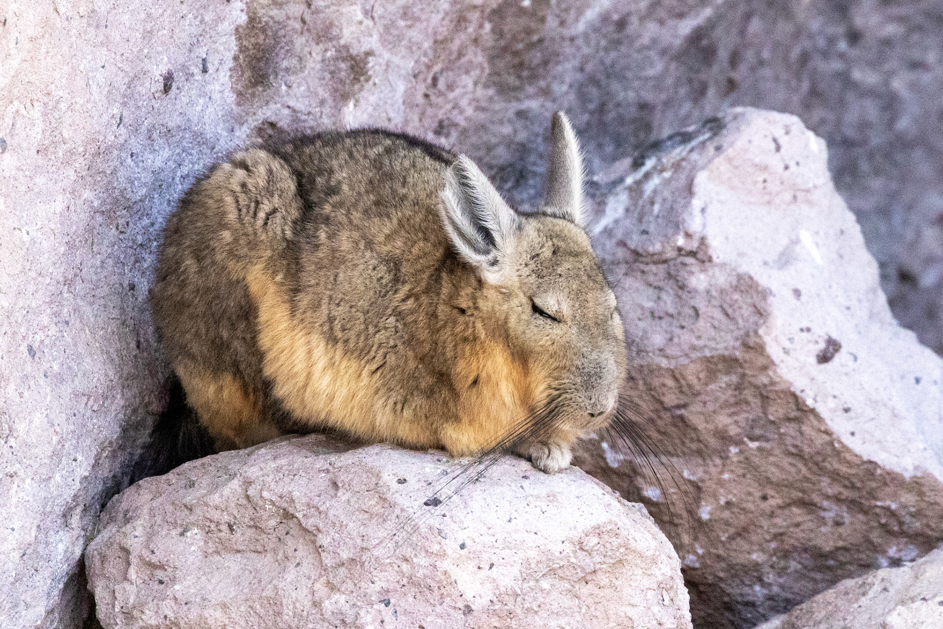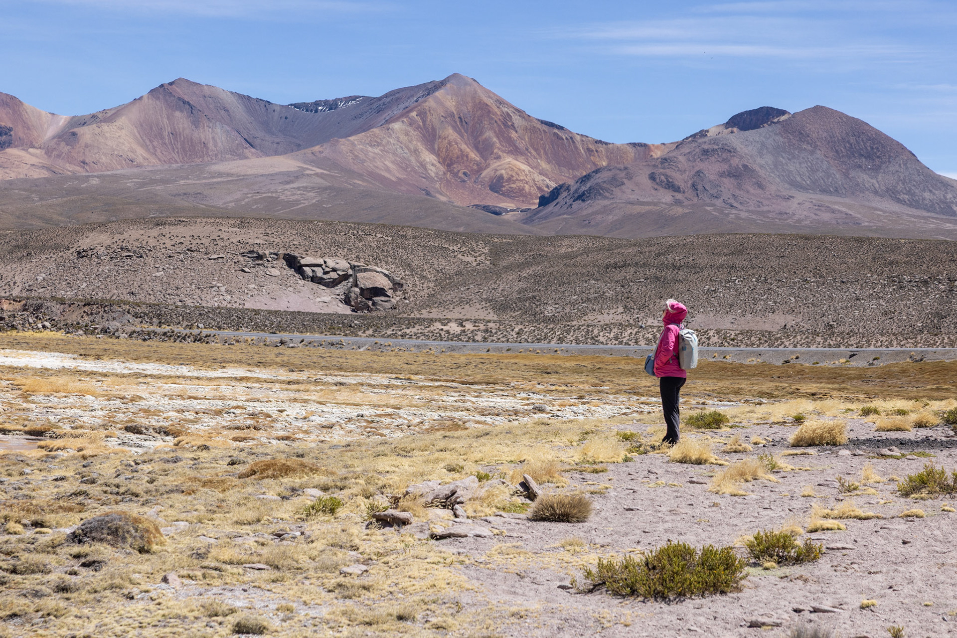 Wir lassen den Tag langsam angehen. Die Höhe macht uns immer noch zu schaffen. Wir fragen den Kellner im Hotel, ob er Touren empfehlen könne, welche unterhalb der 3500 m lägen. Da aber die Strasse nach Socoroma wegen Bauarbeiten teilweise bis zu zwei Stunden gesperrt ist, verneint er. Wir beschliessen trotz Allem, die Strasse nach oben bis auf den Altiplano zu nehmen. Es gibt dort ein Feuchtgebiet mit einem kleinen Thermalbad. Da dieses nur aus einer kleinen, dunklen Hütte besteht, machen wir uns auf den empfohlenen Rundweg von ca. 1 km. Auf einer Höhe von 4500 m eine ziemlich anstrengende Angelegenheit. Unsere Mühe wird jedoch belohnt. Die Landschaft ist umwerfend und wir können verschiedene Tiere beobachten. Am gegenüberliegenden Hang kommt uns eine Herde Vicunyas entgegen. Etwas weiter entdecken wir zwei Viscachas (Chinchillas), die in einer Felsnische schlafen und in einem der Tümpel ist eine Gruppe Enten am Baden.