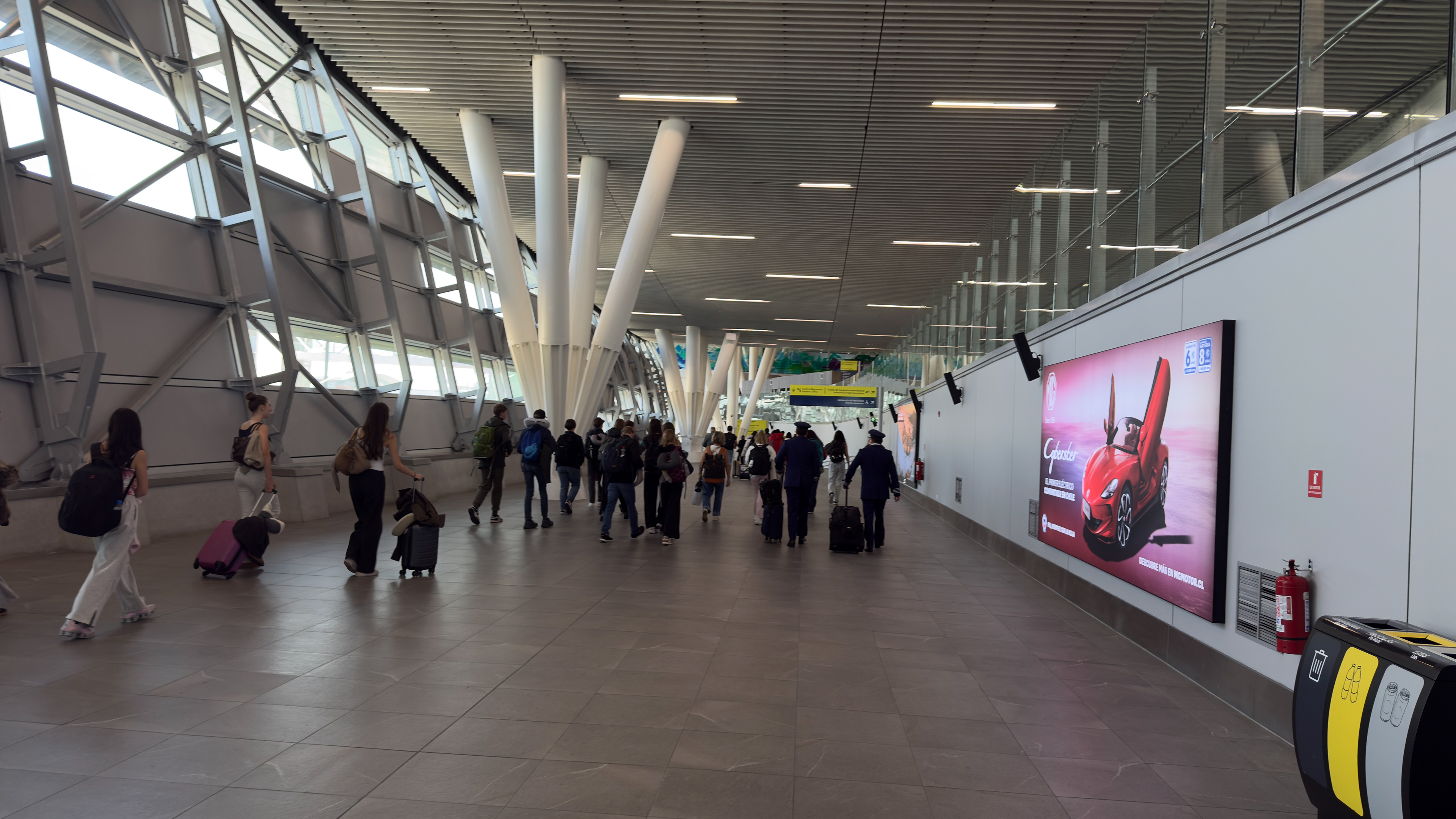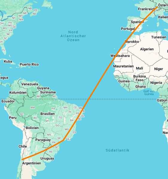 Am frühen Nachmittag fahren wir mit dem Zug an den Flughafen Zürich / Kloten. In rund 10 Stunden fliegen wir nach São Paulo, wo wir einen dreistündigen Zwischenstop haben. Danach geniessen wir den Flug nach Santiago de Chile. Nach einer eher eintönigen Strecke über die schier endlose Argentinische Weidelandschaft werden wir mit einem spektakulären Blick auf die Anden belohnt.