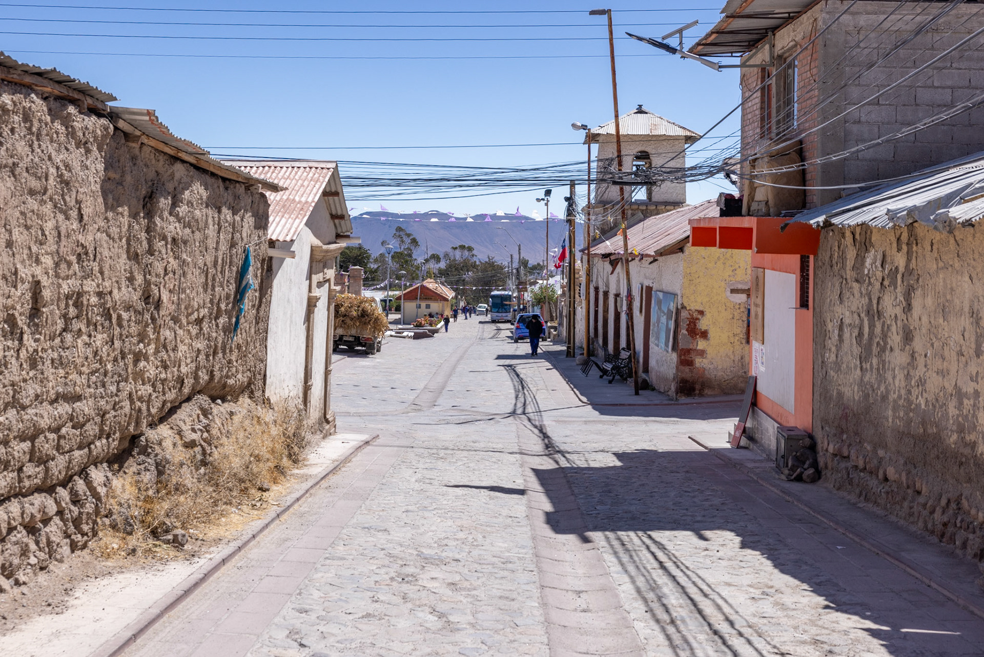 Um sieben Uhr kommen wir in Arica an und begeben uns sogleich zur Autovermietung. Da die Mitarbeiterin von Europcar nur das Einfingersystem beherrscht, dauert es etwas länger, um unsere Daten einzugeben. Gegen 8.30 Uhr können wir endlich losfahren. Der Himmel ist bewölkt und trostlos grau. Da uns der Weg von Meereshöhe auf über 3500 m führt, durchbrechen wir bald den Hochnebel und können die restliche Fahrt bei schönstem Wetter geniessen. Wir fahren durch die spektakuläre Landschaft der Atacama Wüste und erreichen nach einer fast dreistündigen Fahrt Putre. Das Wüstendorf hat ca. 2700 Einwohner und liegt wie gesagt auf 3550 m , was sich bei uns sofort bemerkbar macht. Den Rest des Tages verbringen wir, um nicht zu sehr ausser Atem zu geraten, mit ganz langsamen Bewegungen.