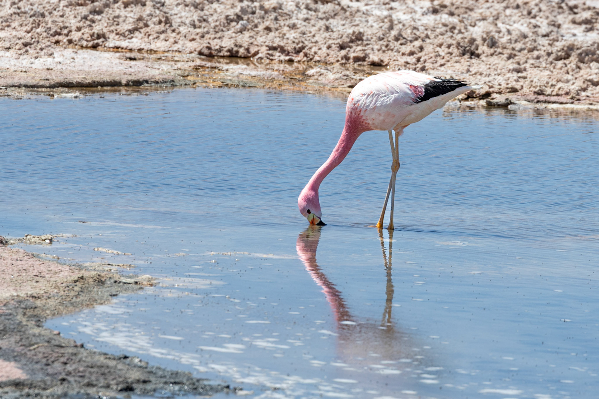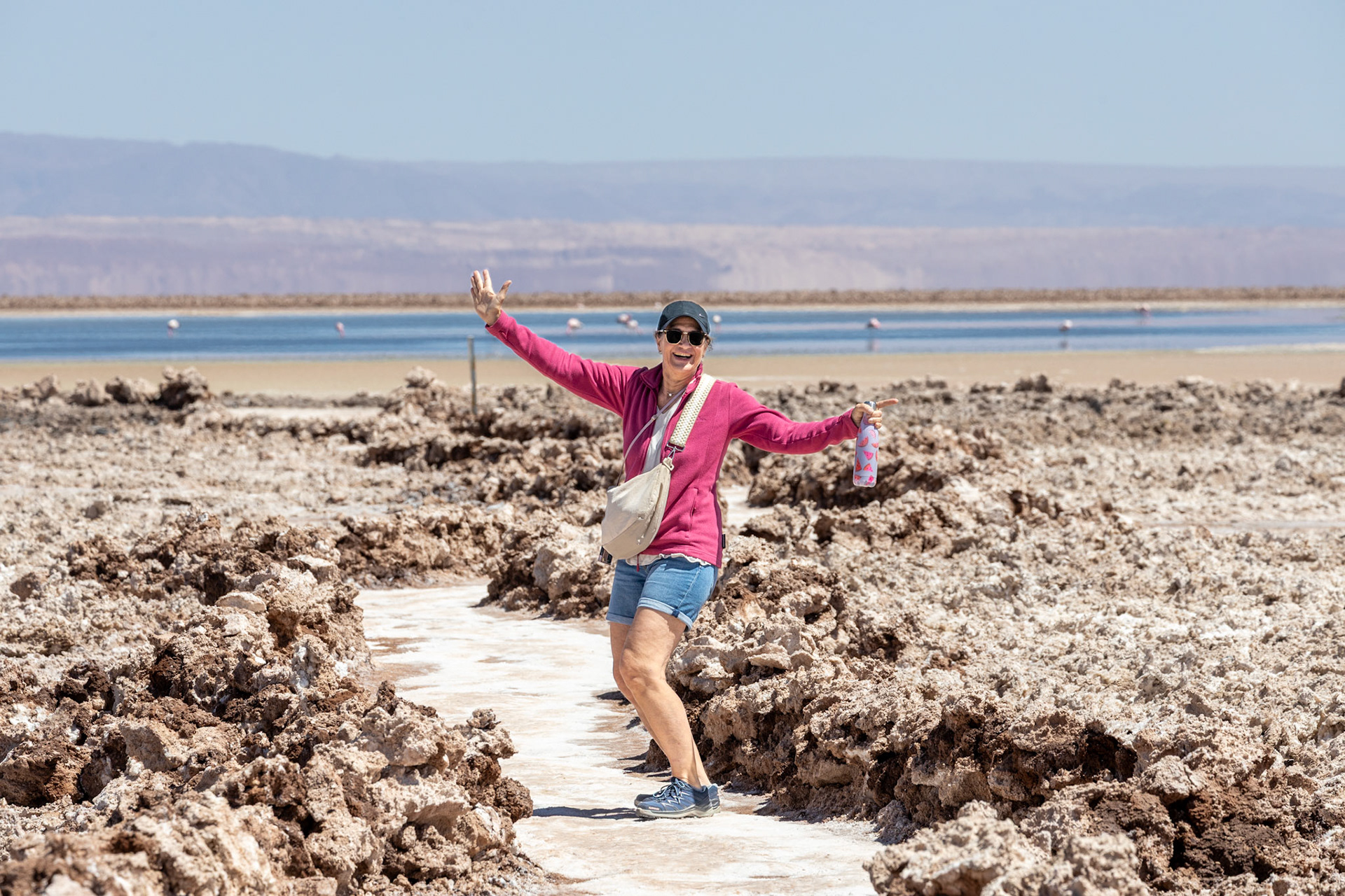 Der Rundweg, der ca. 45 min. in Anspruch nimmt, bietet tolle Ausblicke auf die fast unwirklich erscheinende Landschaft des Salars und die vielen Flamingos die hier nach Algen und Salzkrebsen suchen.