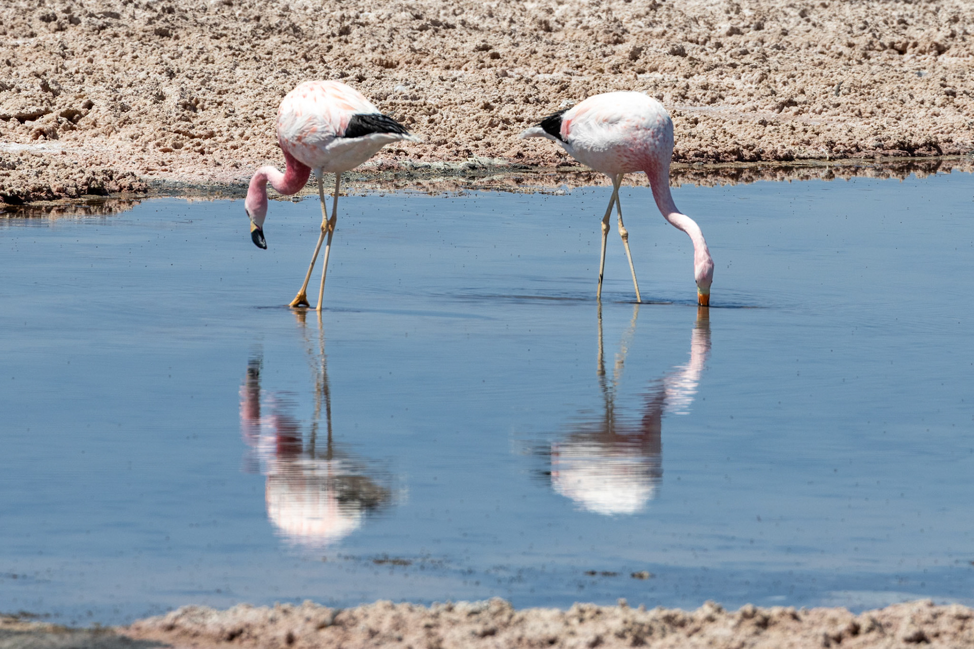 Nach dem Frühstück fahren wir los in Richtung der Laguna Chaxa. Die Lagune ist Teil des "Salar de Atacama" und ein bekanntes Naturschutzgebiet für die Beobachtung von Flamingos. Am Eingang erklärt man uns, dass die Tickets nur per Internet gekauft werden können, was wir mit dem Handy zu erledigen versuchen. Auch hier müssen Nationalität, Alter, Wohnadresse und selbstverständlich wieder die Passnummern eingetragen werden. Die südamerikanische Bürokratie lässt einmal mehr grüssen...