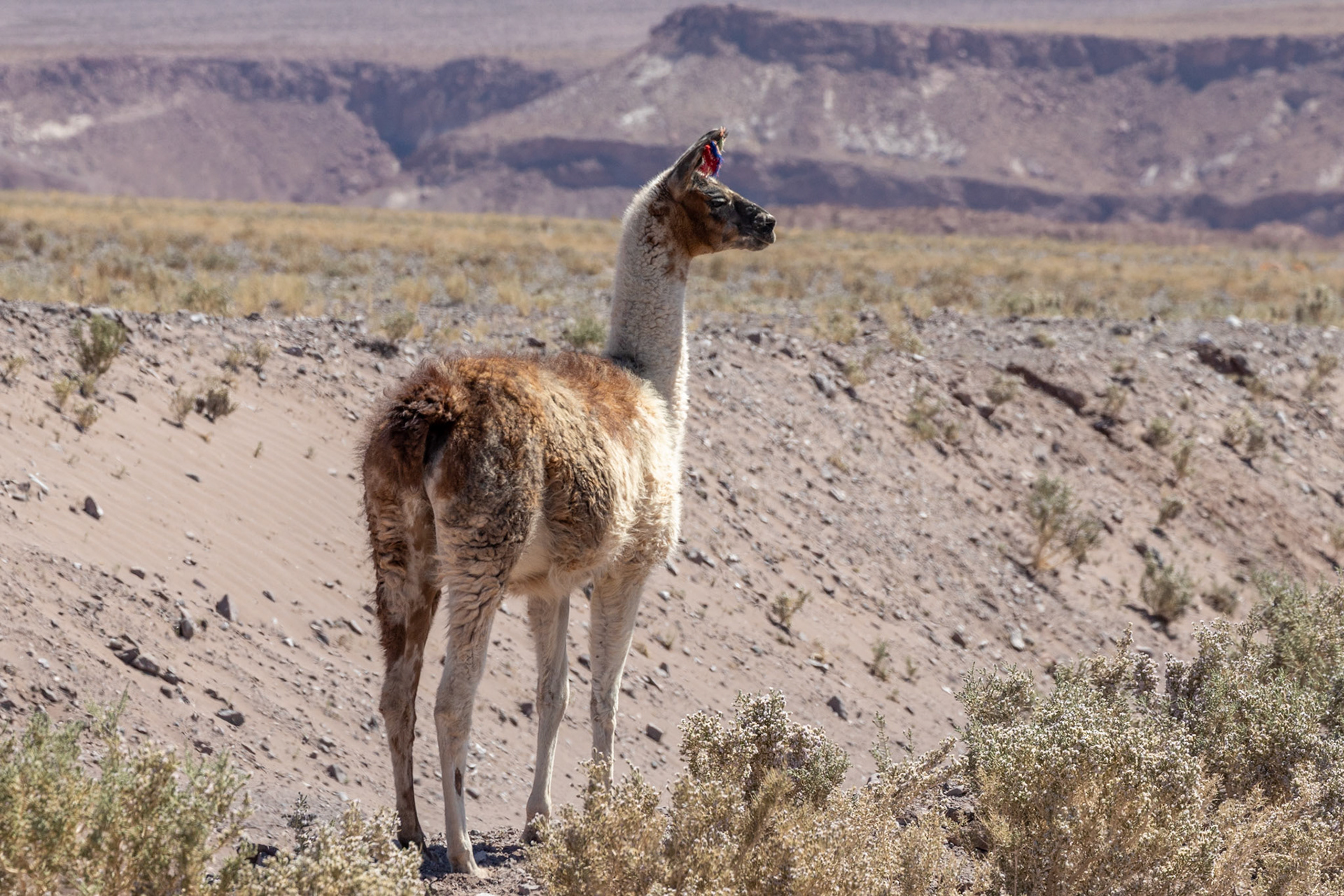 Eigentlich hätten wir heute vorgehabt, die Geysire von Tatio zu besuchen. Da sich diese aber auf 4500 m befinden, verzichten wir darauf und fahren in das Valle del Arcoiris (Tal des Regenbogens). Die Fahrt dauert eine gute Stunde, die letzten 10 km auf Naturstrassen, wo wir mehrere Male den Fluss durchqueren müssen und froh drüber sind, dass wir einen SUV gemietet haben, der auch genügend Bodenfreiheit hat. Mehrere Male müssen wir im Schritttempo fahren, da Lamas, Esel oder Vicunyas den Fahrweg überqueren. Am Eingang zum Tal haltet uns ein Parkwächter an und verlangt 5000 Pesos pro Person. Erstaunlicherweise geht es dieses Mal ohne Ausweise und ohne, dass die Passnummern eingetragen werden müssen.