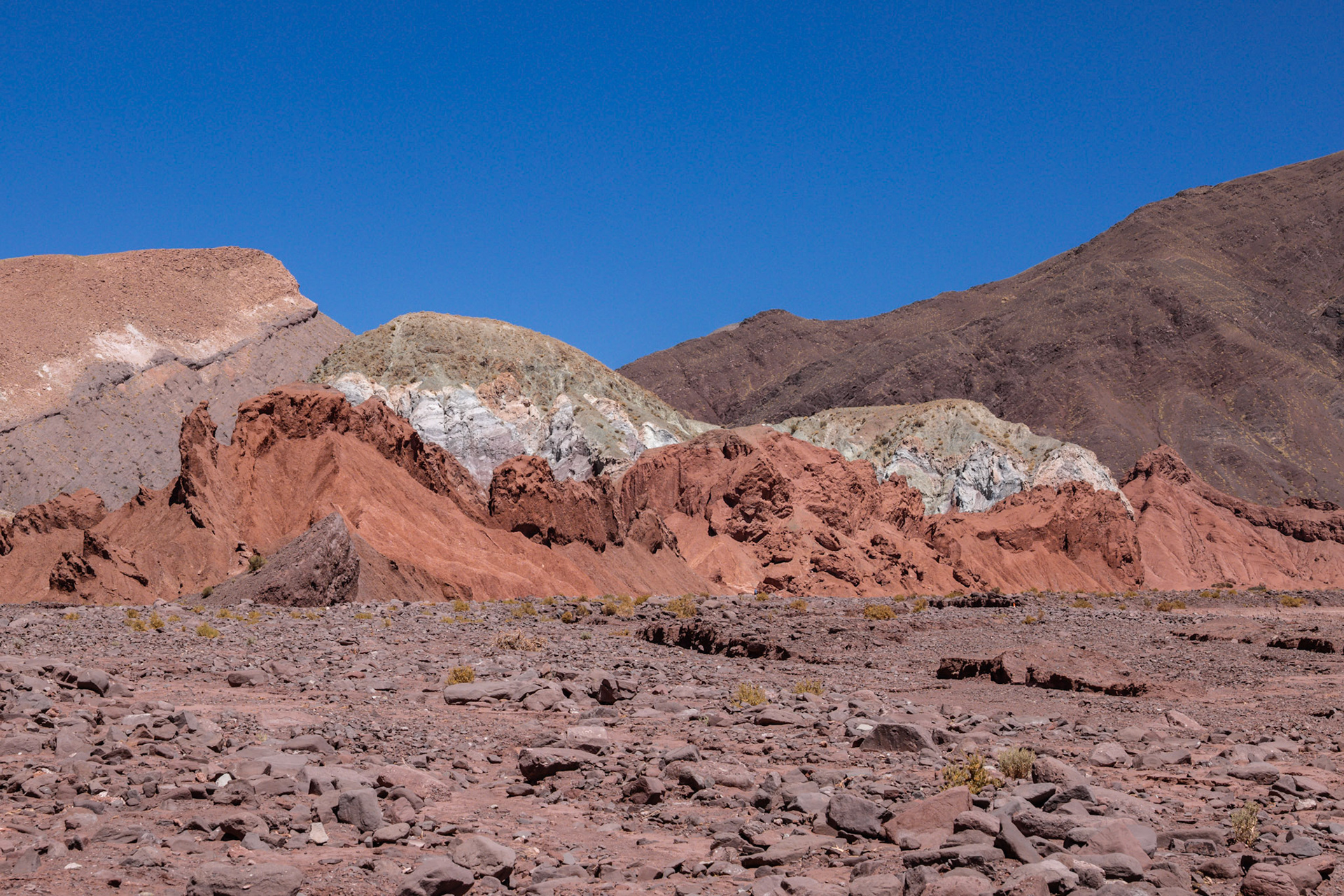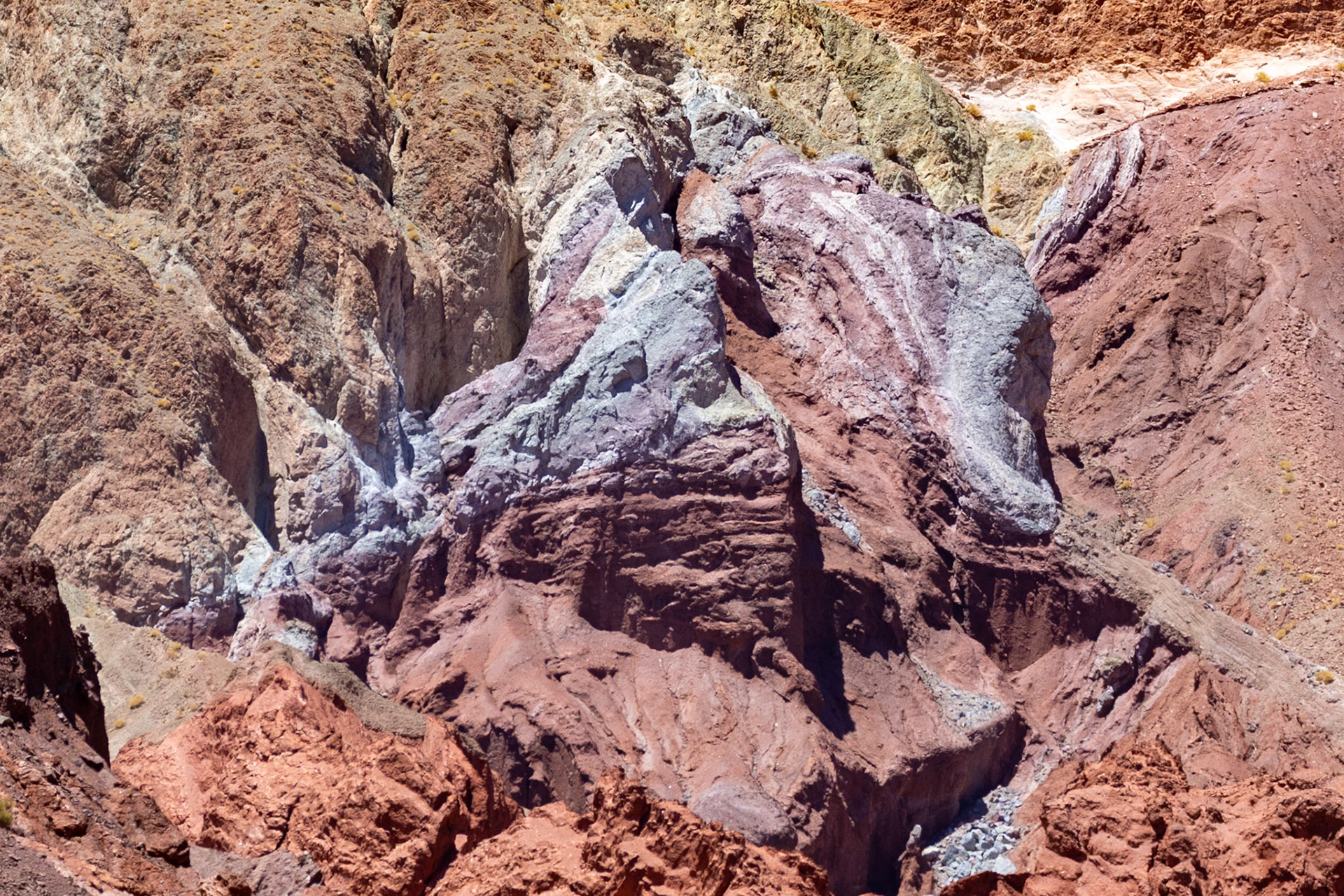 Schon nach wenigen Metern halten wir an, um Fotos zu machen und um die Gegend zu bewundern. Aufgrund der verschiedenen Mineralien, die sich hier während Millionen von Jahren gebildet haben, leuchten die Felsen in allen Farben. Langsam fahren wir in das Tal hinein, steigen immer wieder aus, um die Umgebung zu Fuss zu entdecken.