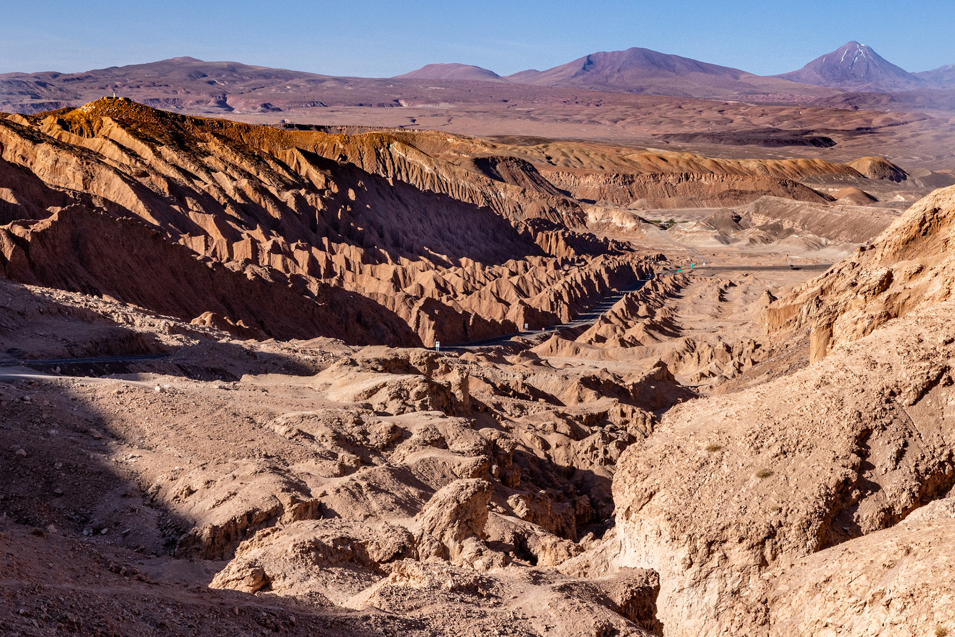 Die Wüstenlandschaft ist hier eher eintönig. Erst kurz vor San Pedro wir es wieder interessant. Kurz bevor wir am Ziel ankommen durchfahren wir das Valle de la Luna und das Valle de la Muerte.